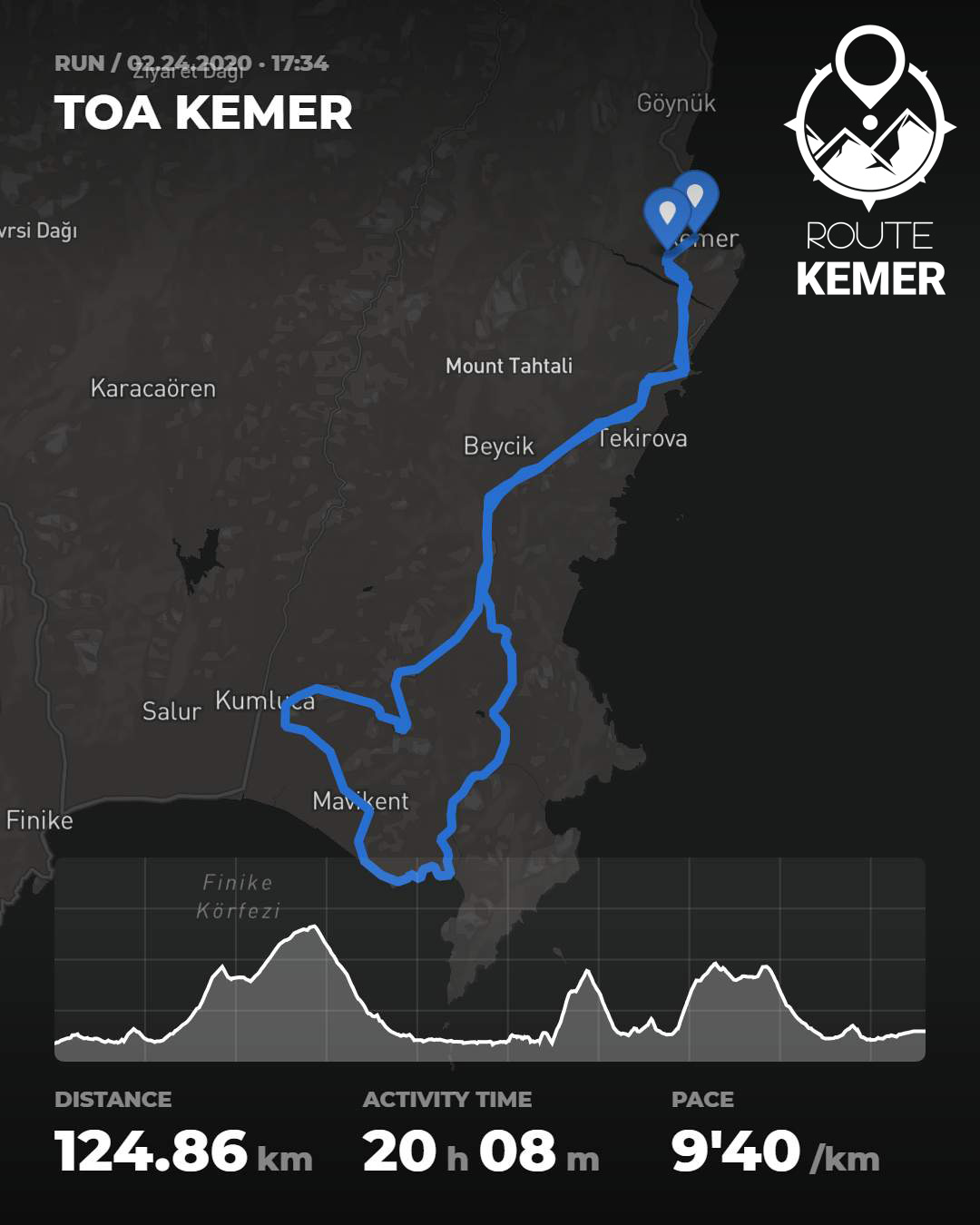 Tour Of Antalya - Kemer Stage parkuru, 125.84 kilometre uzunluğuyla, bisiklet sporunun dayanıklılık ve gücünü test eden zorlu bir etap sunuyor. Bu tek yönlü yol bisikleti parkuru, Kemer'den başlayarak Antalya'nın en güzel bölgelerinden geçen, 2,361 metre tırmanış içeren zorlayıcı bir sürüş deneyimi sunuyor. Maksimum 588 metre yüksekliğe ulaşan bu parkur, katılımcılara hem fiziksel hem de zihinsel olarak meydan okuyor.