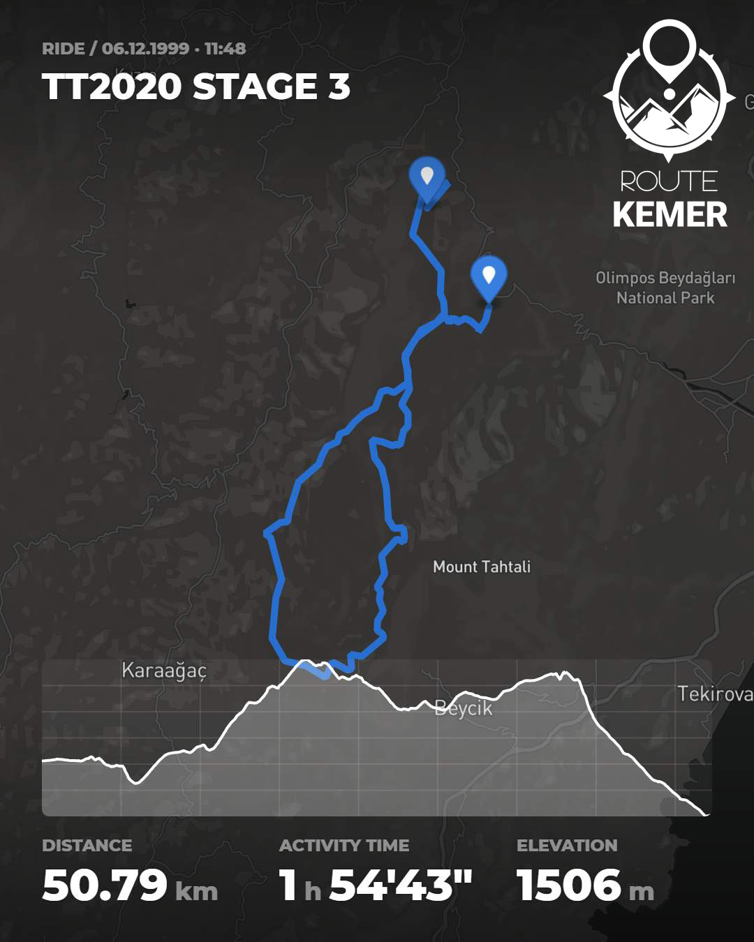 Bu 51.59 kilometrelik rota, TT2020 Etap 3'ün zorlu güzergahlarından biridir ve uzman seviyesindeki katılımcılar için tasarlanmıştır. Rota boyunca 1,528 metre yükselti kazanımı ve 1,922 metre yükseklik kaybı yaşanır; bu da hem zorlu tırmanışların hem de teknik inişlerin bolca bulunduğunu gösterir. En yüksek noktası 1,777 metre olan bu parkurda, minimum 678 metre yükseklikten başlanarak zirveye doğru çıkılmaktadır.