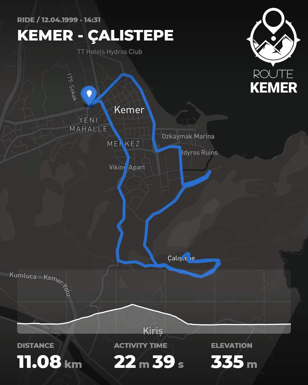TrailRank değeri 11 olan bu rota, orta zorluk seviyesine sahip olup, doğa yürüyüşü yapmak isteyenler için uygun bir seçenek sunar. Başlangıç ve bitiş noktalarının aynı olması, rotanın döngüsel olduğunu ve aynı manzarayı farklı açılardan görebileceğiniz anlamına gelir. Deniz seviyesinin altında başlayan parkurda, Kemer'in eşsiz bitki örtüsü ve Akdeniz'e özgü doğası eşliğinde keyifli ve rahatlatıcı bir aktivite sizi bekliyor.
