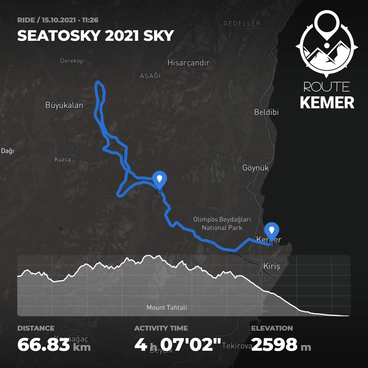 Sky Race rotası, yarışçıları Kemer'in zorlu ve dağlık arazilerinde, yüksek irtifalara taşıyarak onları hem fiziksel hem de zihinsel olarak zorlayan bir parkurdur. Yarış parkuru sürücülere çeşitli zemin koşulları sunarak dikkat ve yetenek gerektiren bir deneyim sağlar. Bu etap, ormanlardan ve açık alanlardan geçerek zirvelere doğru uzanır ve her dönemeçte yeni bir zorluk sunar. Yüksek irtifaya ulaştıktan sonra yarışçılar, rota boyunca ilerleyerek Padok alanına geri döner.