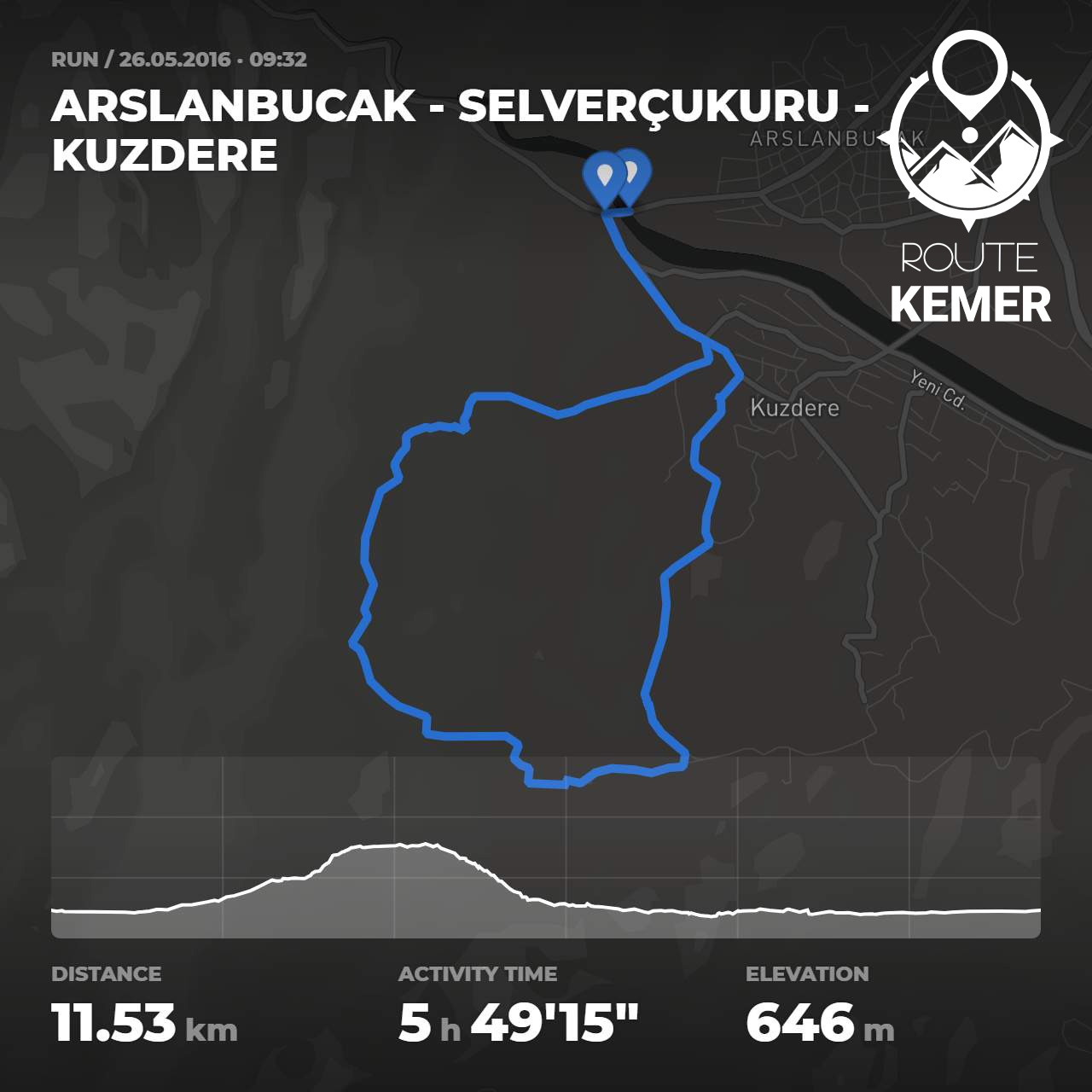 Bu koşu parkuru, Kemer bölgesinin Arslanbucak, Selverçukuru ve Kuzdere noktalarını kapsayan, doğal güzelliklerle çevrili orta zorlukta bir döngü rotasıdır. Bölgenin doğal yapısını ve huzur veren atmosferini hissetmek isteyen sporcular ve doğa severler için mükemmel bir tercih.